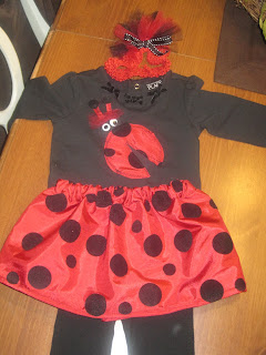 I am really excited about Hannah's costume this year! She is in LOVE with Tinkerbell and April had a pattern for a costume. We have watched "tinkebell" the movie at last 30 times! April did such a great job making the costume and I can't wait for her to wear it. We are going trick or treating at Safety Town and to the Fall Festival at her school's church tonight. Going to try out the new costume! Lauren is going to be a lady bug. I made her little outfit and am glad that it turned out cute.